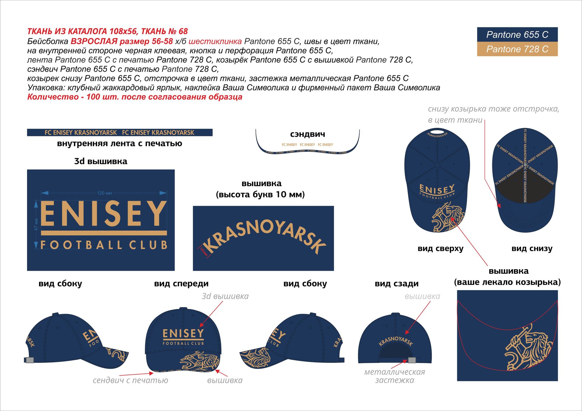 Cap FC Enisey dark blue+gold