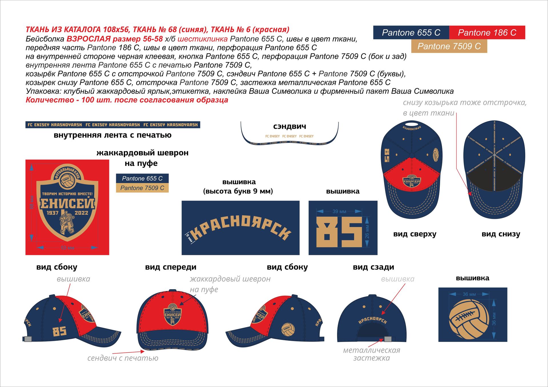 | Cap Material | Cotton fabric standard art.108x56 small hem |
