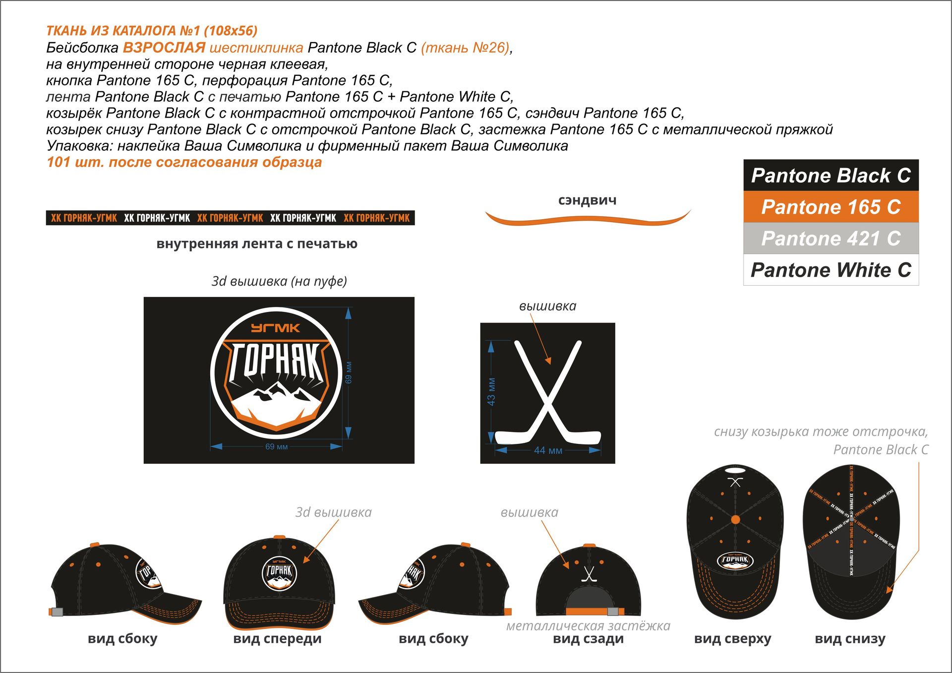 | Cap Material | Cotton fabric standard art.108x56 small hem |